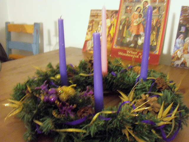 Here’s a photo of our wreath at home: http://yfrog.com/648b9j and at the parish: http://yfrog.com/mv80501j