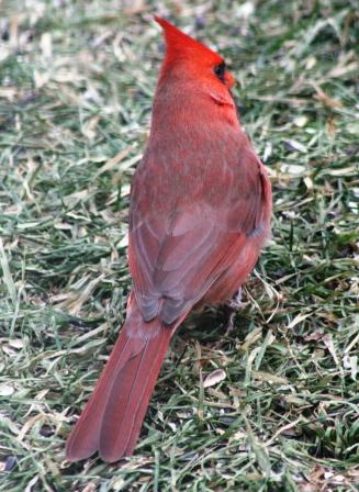 I don’t seem to be able to draw in many Cardinals, despite the fact that there is good cover here and the food they like. But this fellow comes fairly regularly.