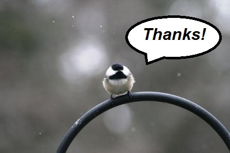Thanks to all of you who have made a donation to help feed the birds. They eat from donations.