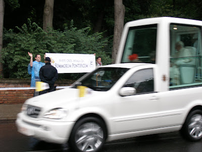 Oh, how cool! And the Holy Father spotted these intrepid fellows and their sign! That’s even cooler, in spite of the rain!