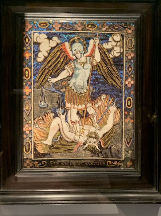 This is a great 16th c. Mexican St. Michael made from feathers!