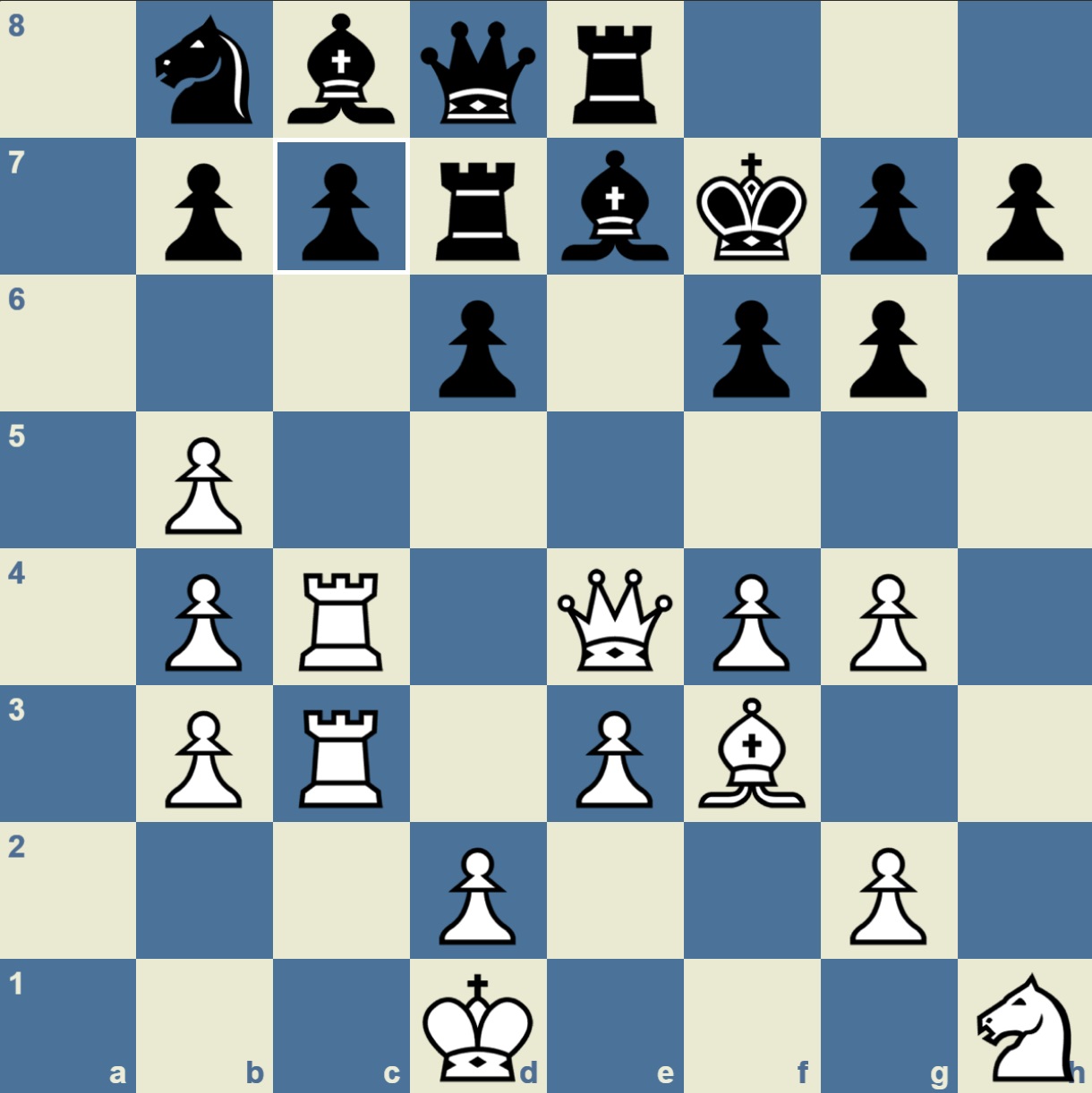Tripled pawns and down a piece in this composed puzzle. Black’s pieces are stuck. But not for long. White to move and force mate in 5.