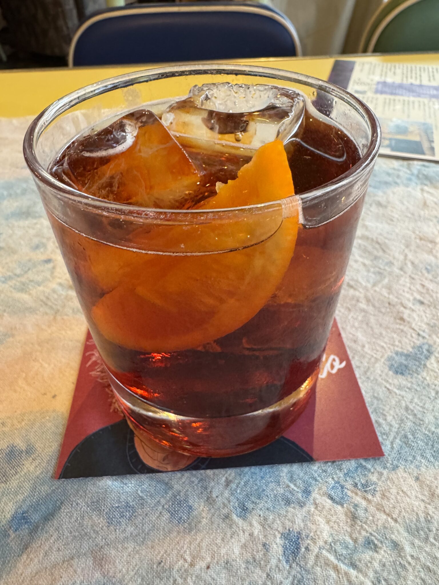 I’ll go with an Aperol spritz . . . because of the color and the orange.