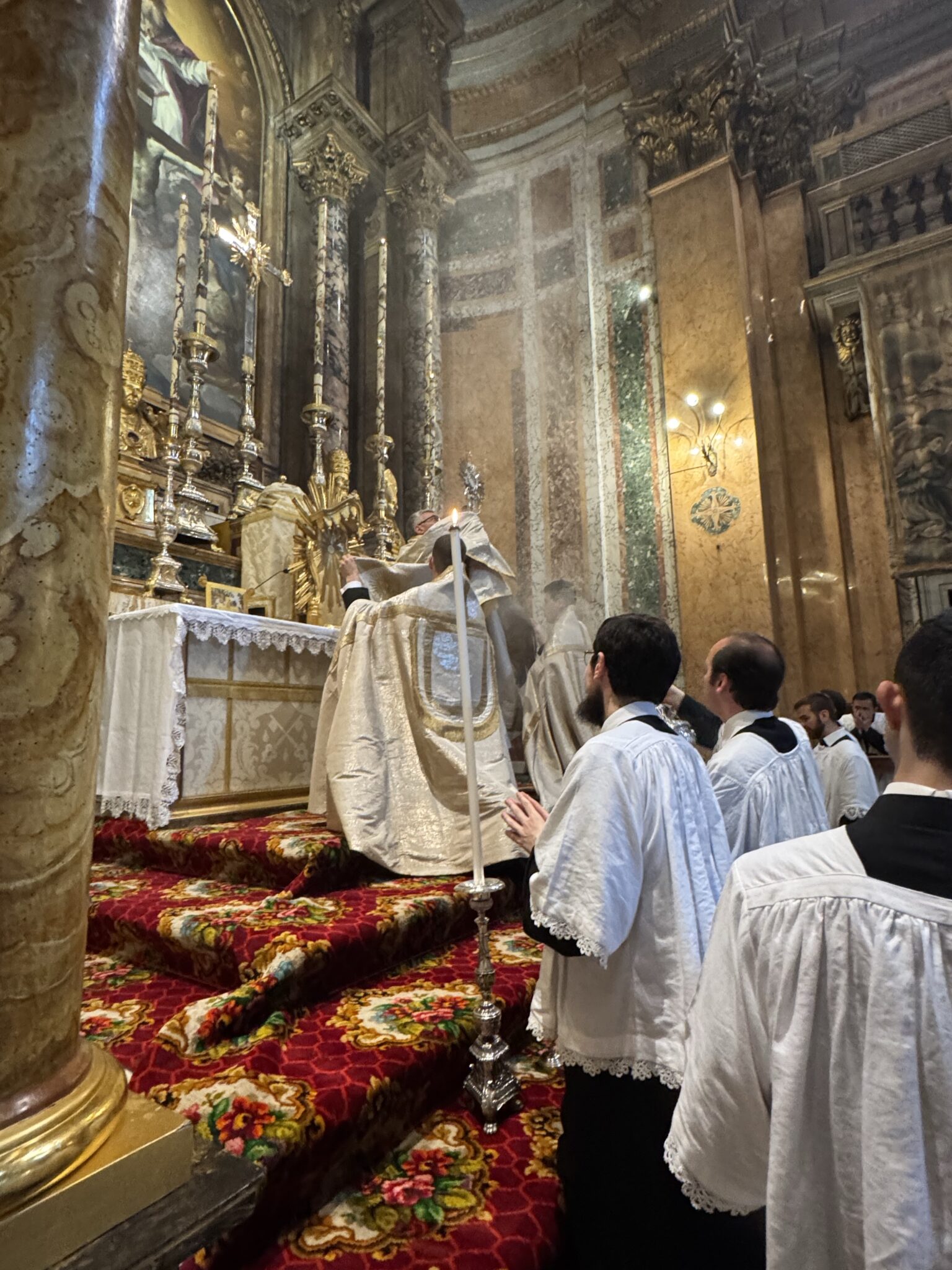 The collars of the servers are sort of like the collar of St Philip, which means sort of like the collars of the oratorians. Not quite. They do look good.