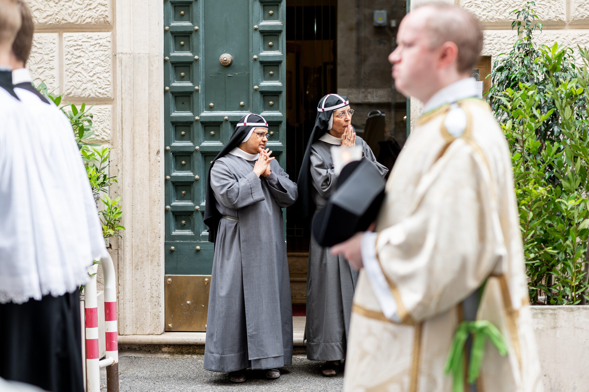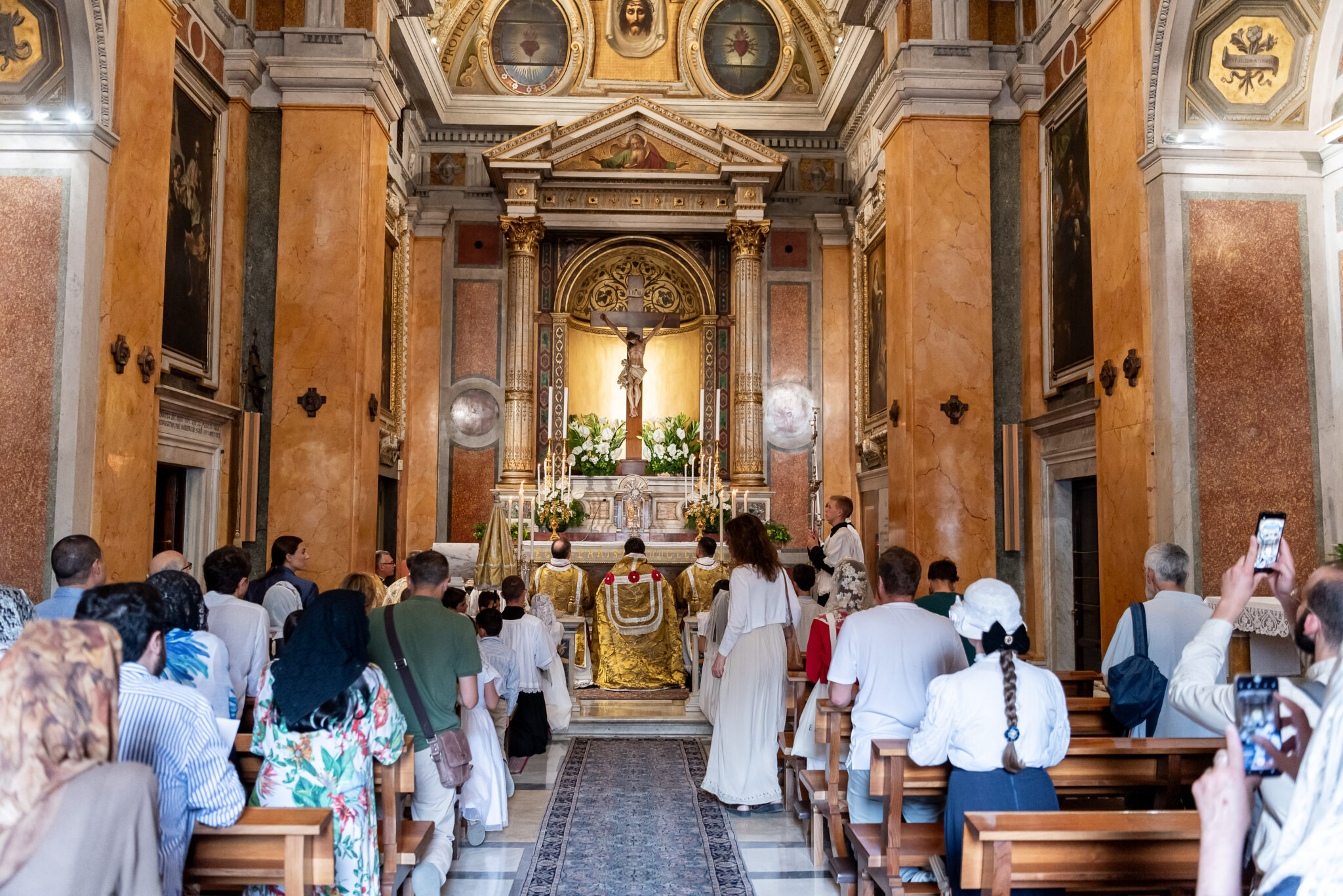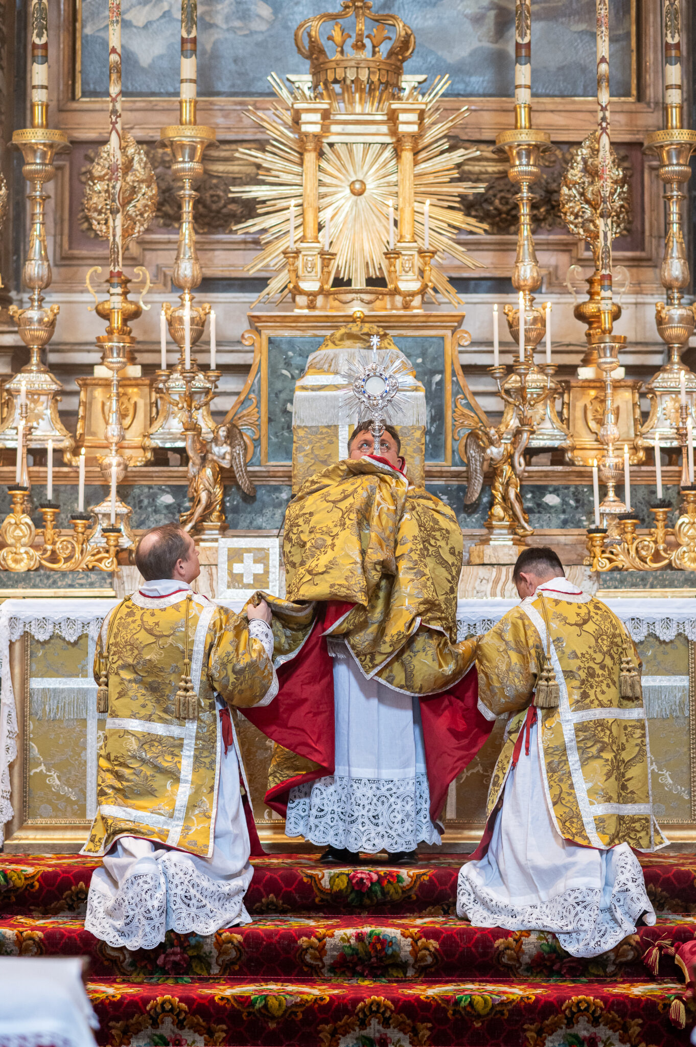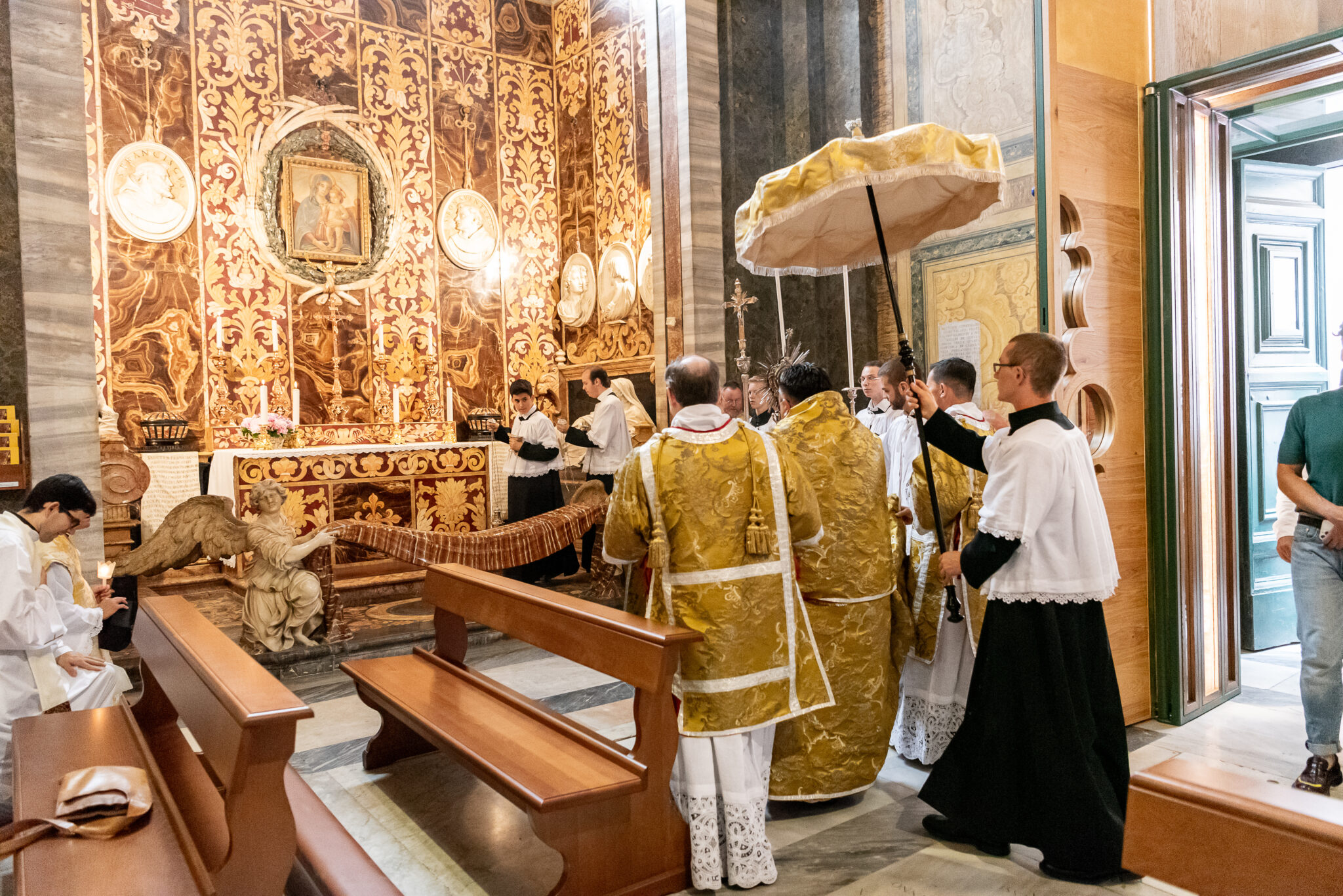 Members of the Archconfraternity waiting at the Benediction station at S.M. della Quercia.
