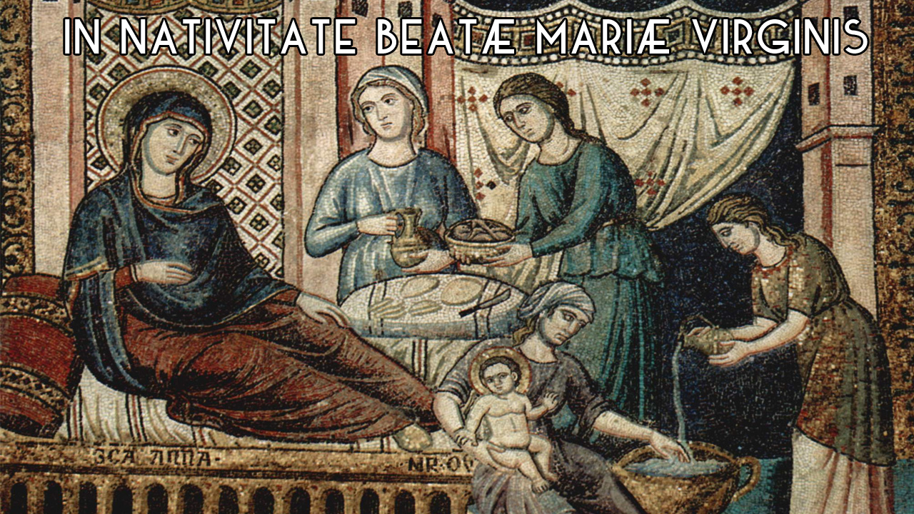 Festum Nativitatis beatae Mariae Virginis, ex semine Abrahae, de tribu Iuda ortae, ex progenie regis David, e qua Filius Dei natus est, factus homo de Spiritu Sancto, ut homines vetusta servitute peccati liberaret.