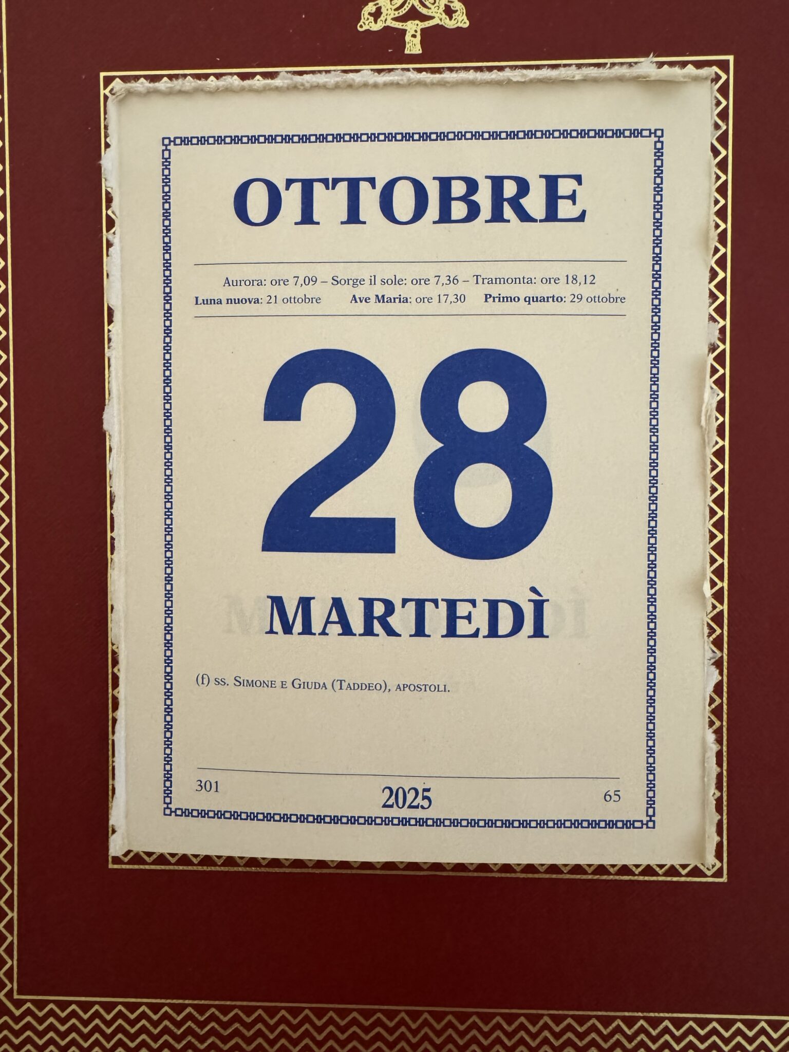It was the Feast of Sts. Simon and Jude. I have 1st class relics of BOTH in the Chapel of the Two Trinities back across the pond.