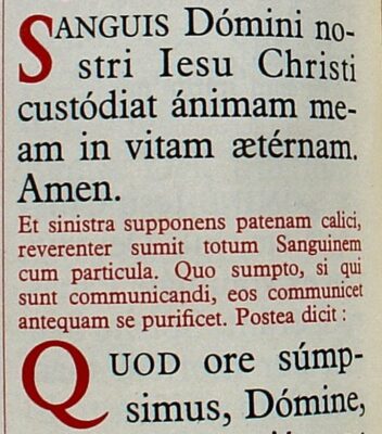 [It’s in the 1962 Missale too. I’ll insert an image to the right of the rubric in a 1962 Missale.] The recovery of the fact that the reception of Holy Communion by the faithful is an integral part of the Mass is a very good acknowledgement that the people matter, and the people are part of the Mass. Does it take away from the sacrifice of the Mass that the faithful are invited to sup with our Lord at Holy Communion? We are not losing the sacrifice; we are gaining a richer understanding that Holy Communion of the faithful is a part of the Mass.