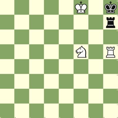 Interim, motus ad lusorem cum militibus albis pertinent. Scaccus mattus, scilicet mors regis, duobus in motis veniat.