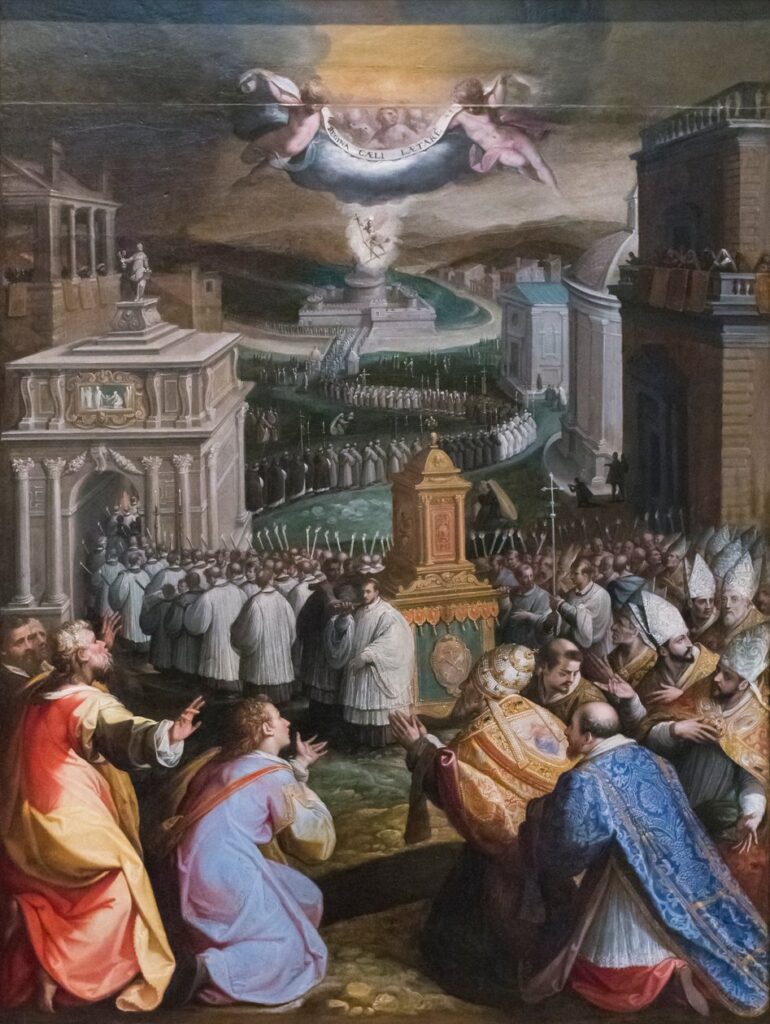 One year after those dire events in Rome, new Pope and future St. Gregory “the Great” (+604) was the only major figure standing who could deal with ongoing plagues, a series of destructive earthquakes that brought down cities, and an invasion of not-so-legal and not-so-peaceful “immigrants” from the north.