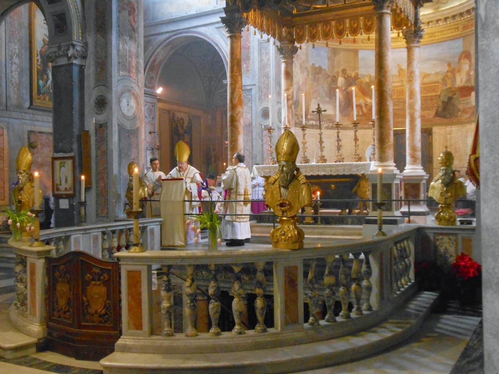 Interior of San Nicola in Carcere, in which Card. Burke is celebrant and I am the deacon… fitting, since I was ordained a deacon in this church.