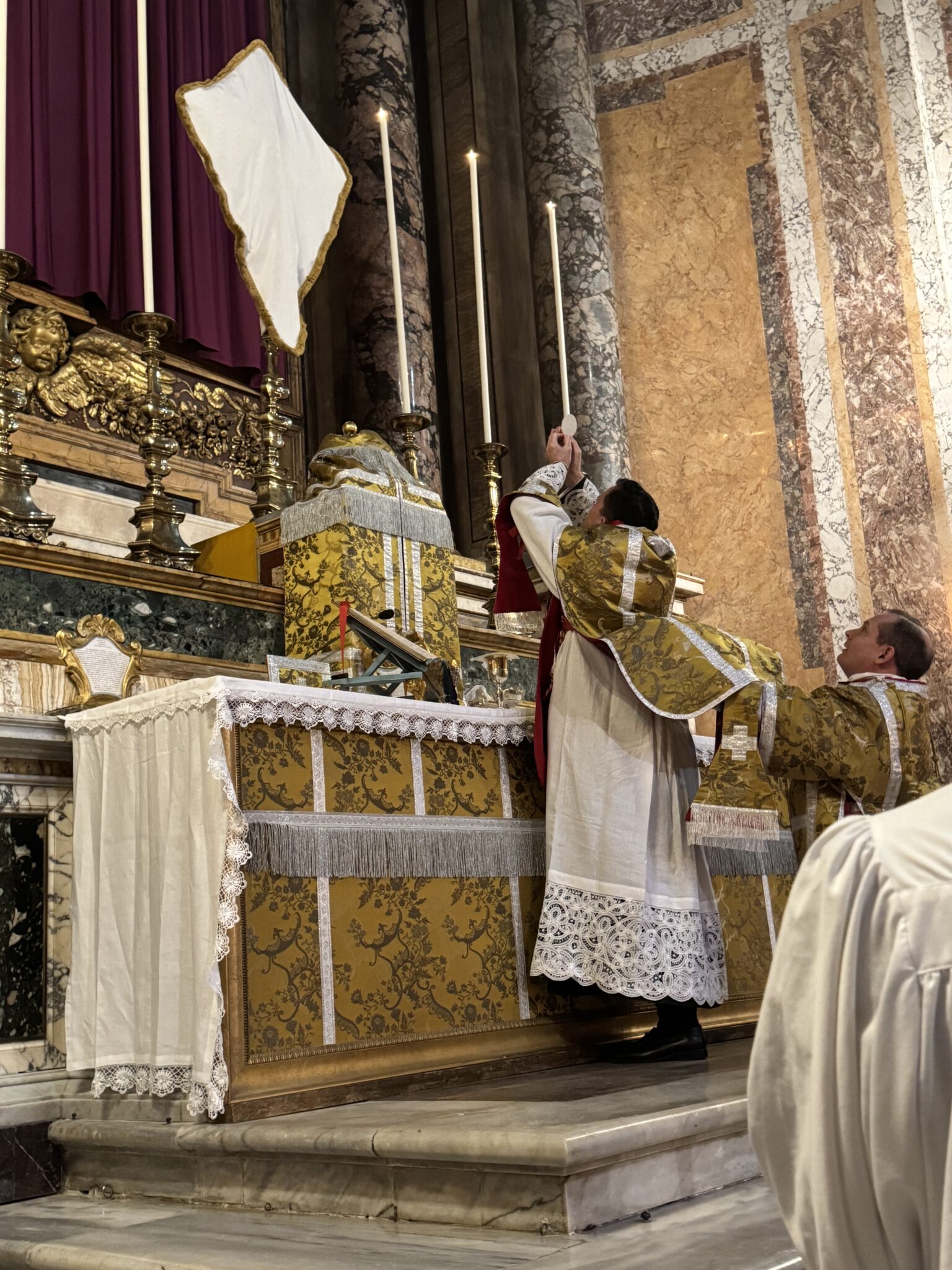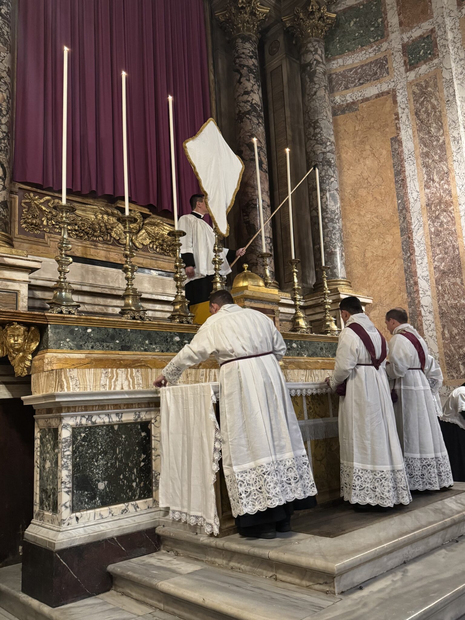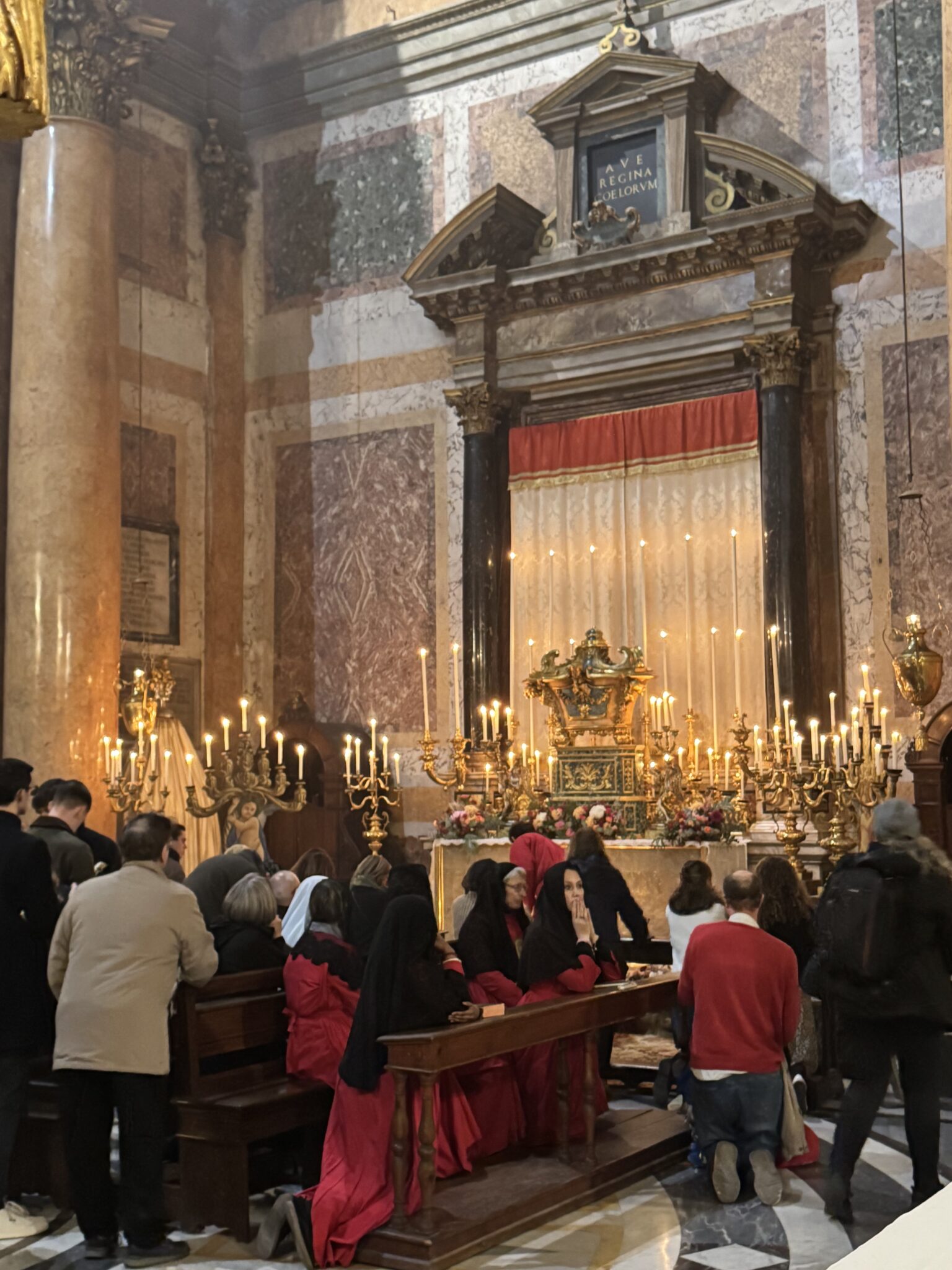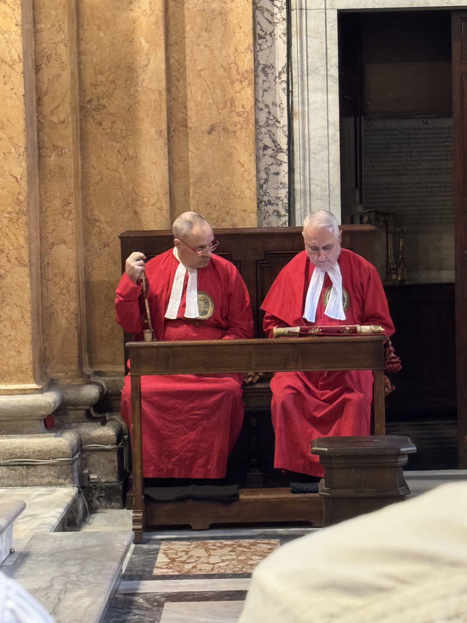 The “Guardiani” of the Archconfraternity sit with the clergy in the sanctuary for great feasts.