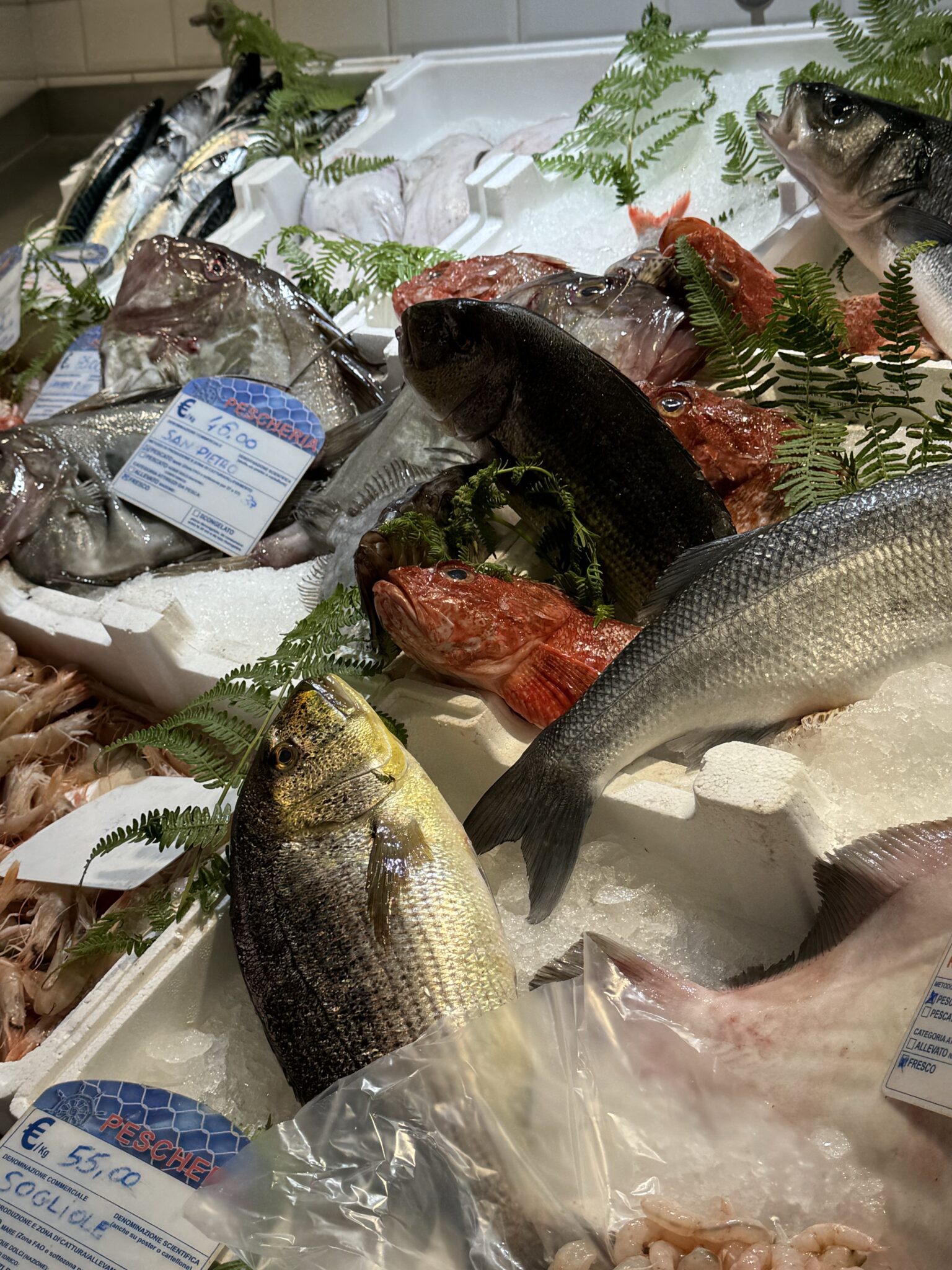 Yesterday, I treated myself to some new flowers from Pippo. The others, the first I bought, had lasted over two weeks! But they were starting to drop petals. What I didn’t mention is that I was at the fishmonger before I went to get the flowers.