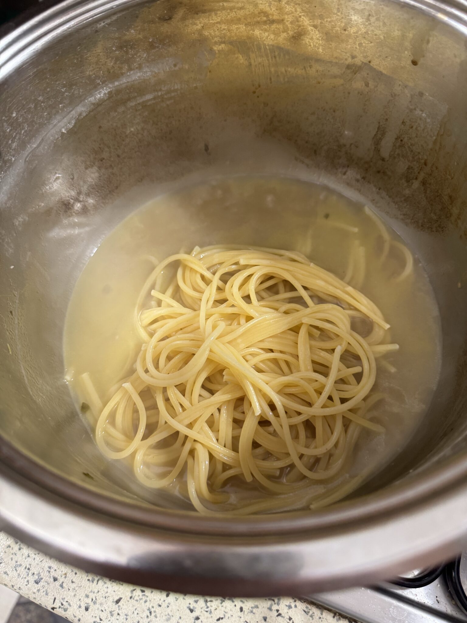 I cooked the spaghetti – mostly – ahead and put it aside while I prepared the clams.
