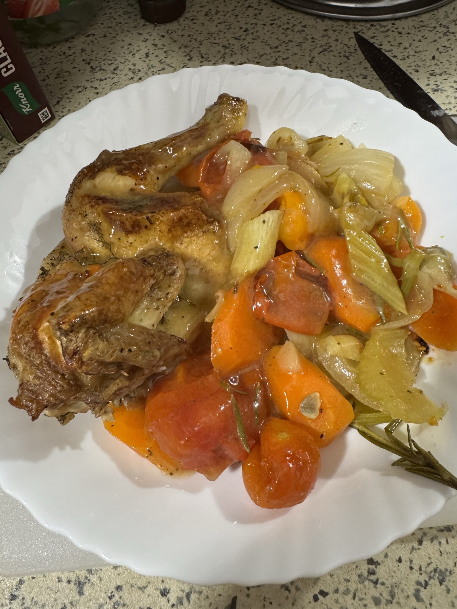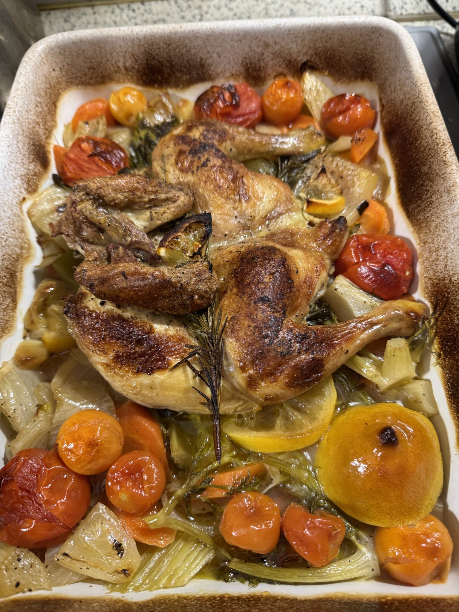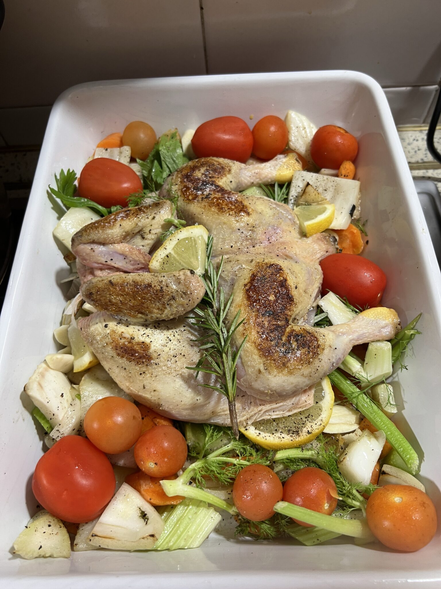 Last night I did some more cooking. I roasted a spatchcocked chicken.