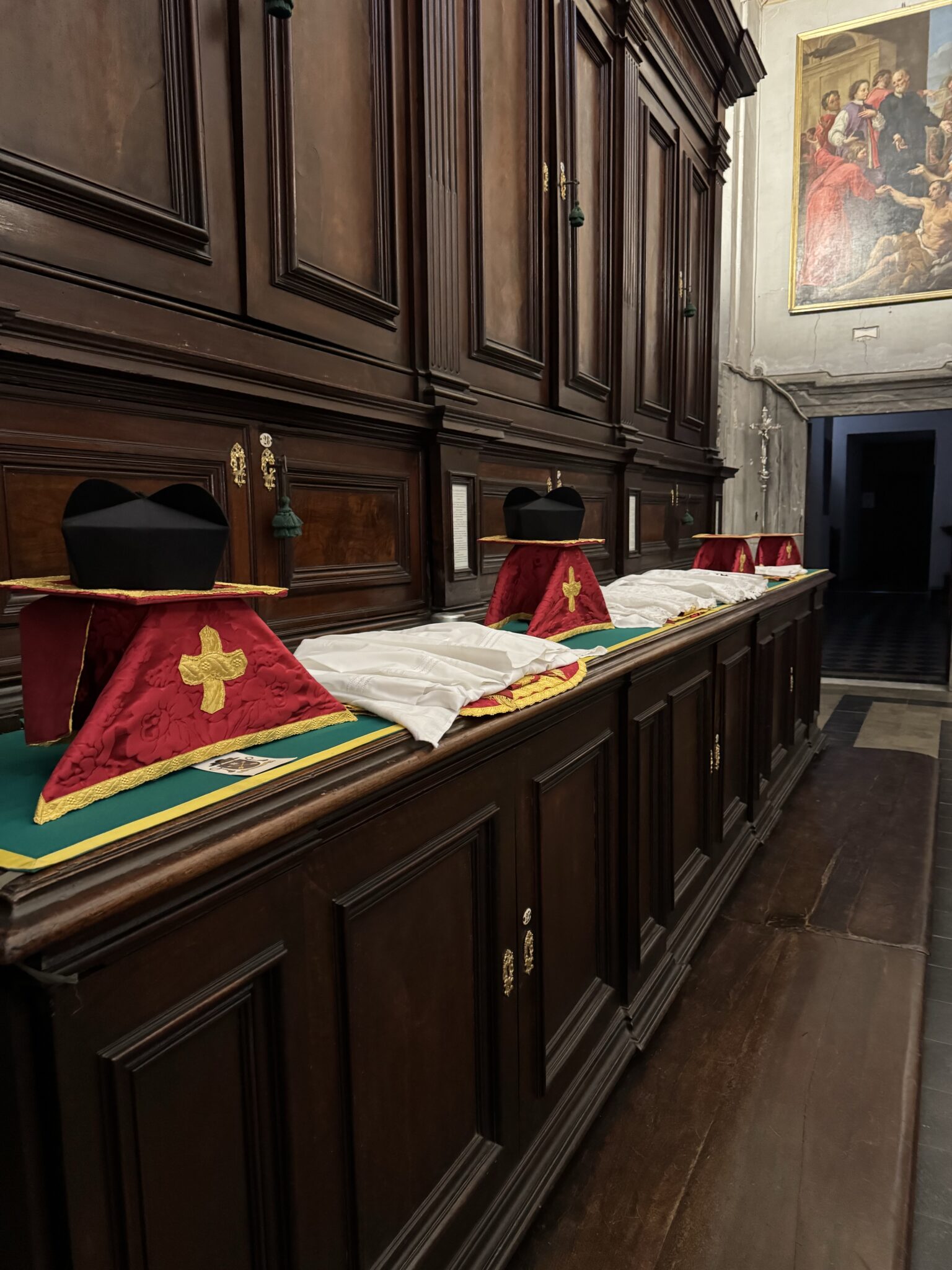 Speaking of martyrs, look at these lovely red vestments laid out for private Masses of priests at The Parish™.