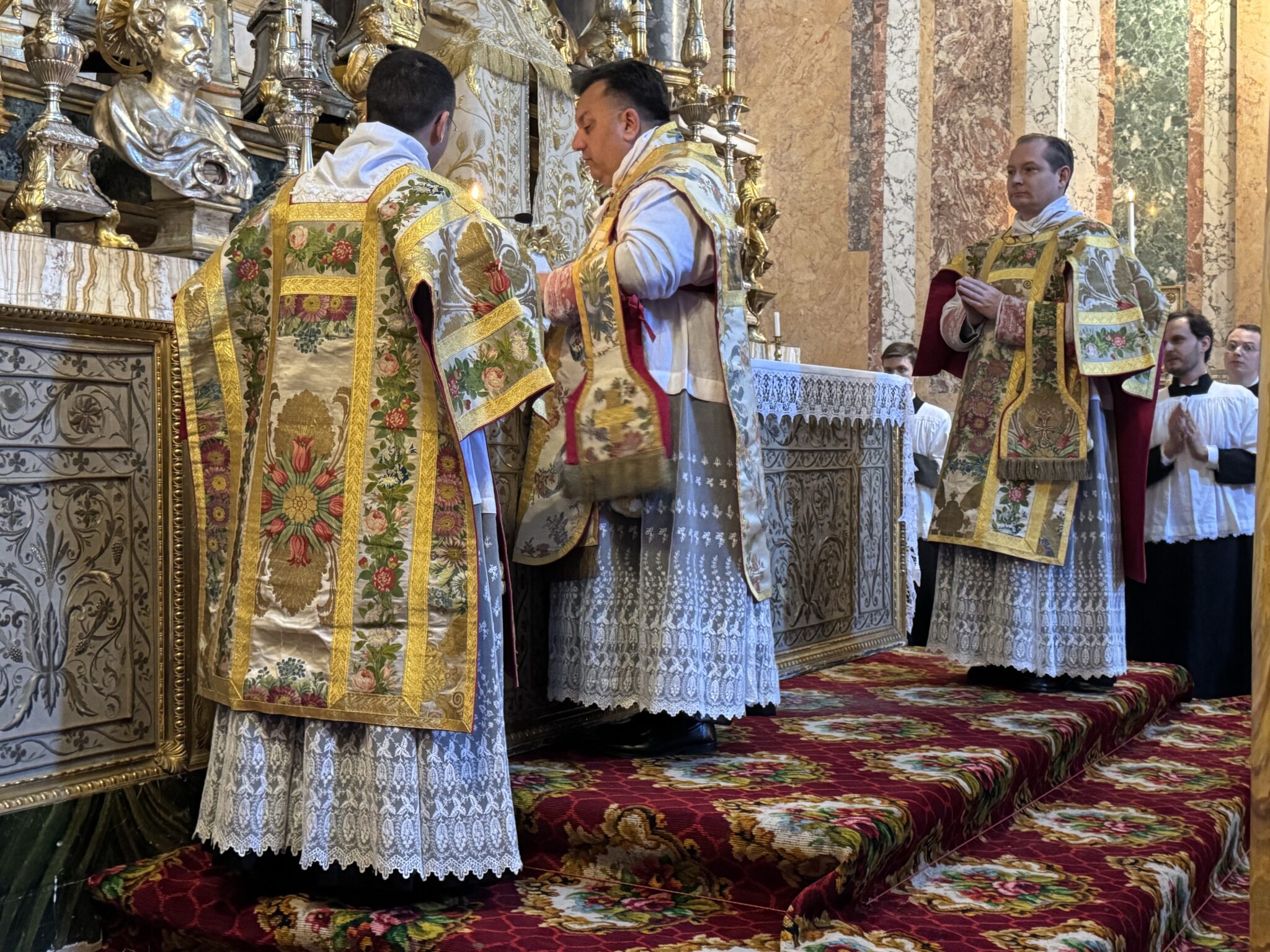 Did I post this from Sunday? There was a great choir from Switzerland. Frenchy flappy dalmatic sleeves, but okay.