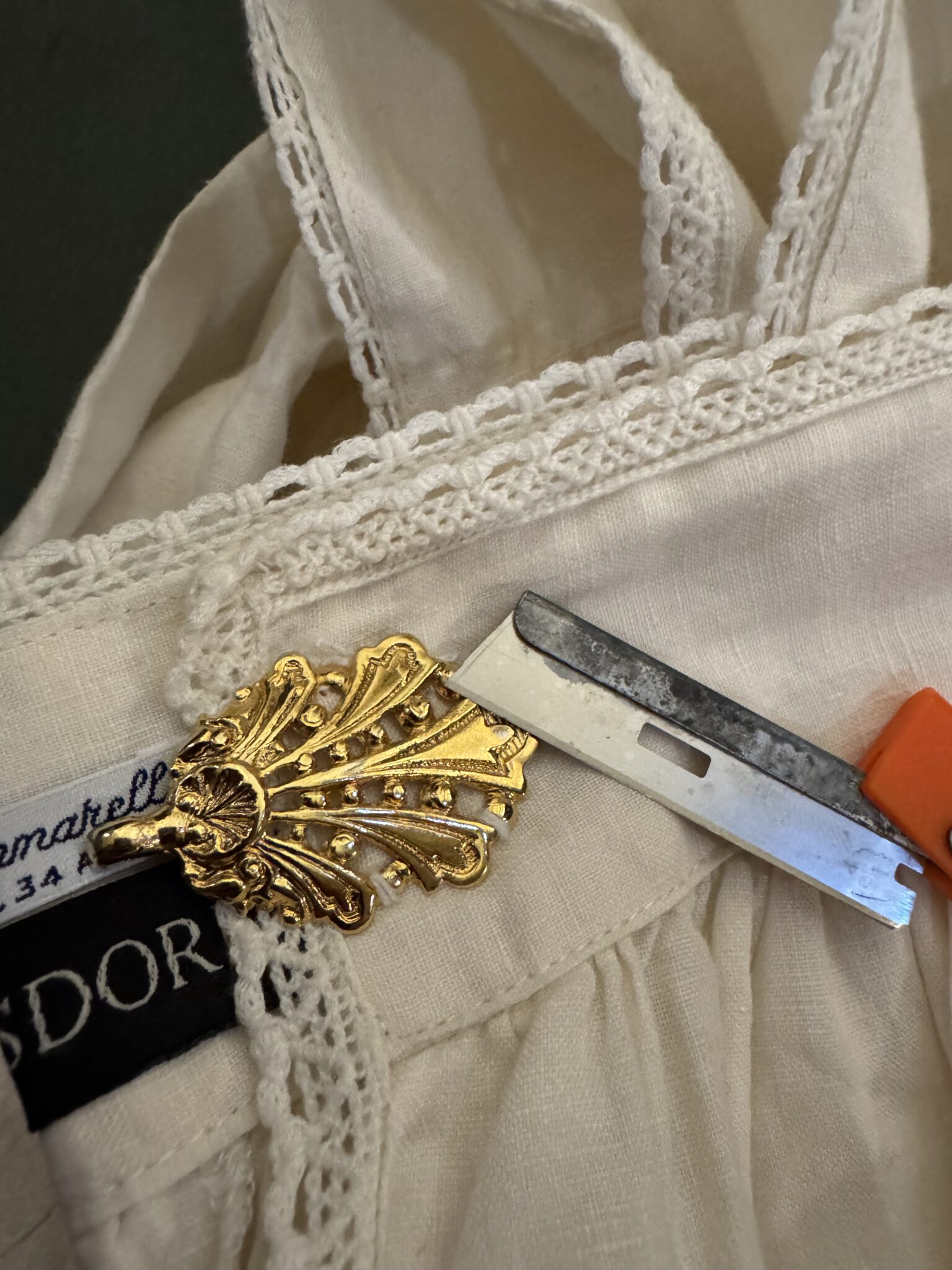 On Sunday I went to church a little early to do some surgery on my surplice.  The hook on these stupid clasps keep breaking, so… enough.  I replaced them with ribbons I can tie.