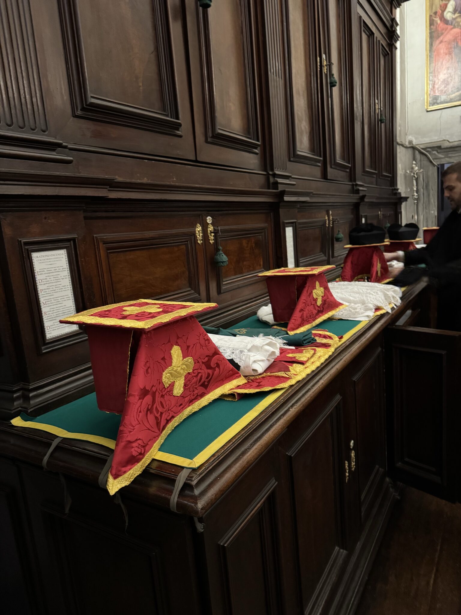 Today in the Vetus Ordo we celebrated St. Paul of the Cross.   Tomorrow, since it is St. Peter Martyr, The World’s Best Sacristan™ had to swap out all the white for red which the priests left from the morning round.