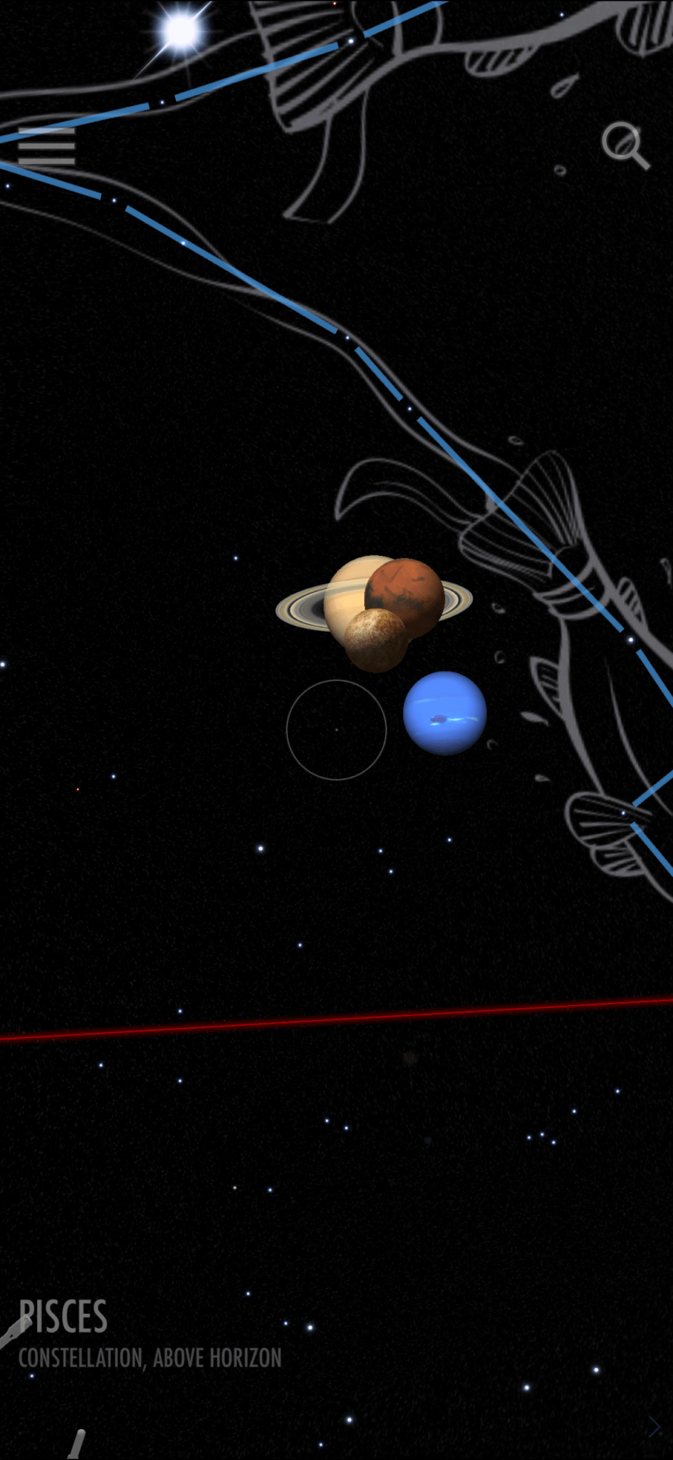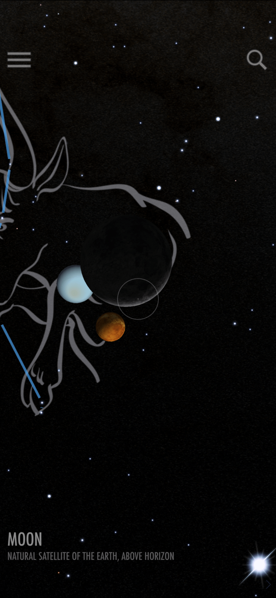 After lunch we were fiddling around with an app that shows the location of heavenly (physical) objects and we spotted a couple of amazing conjunctions.
