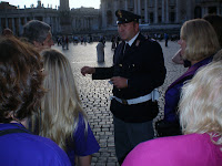 "Ordain Women! Ordain Women!" the woman chanted. [I bet the Romans looked at them with great patience… as they do most of the unbalanced street people you meet everywhere.] They later tried to deliver a petition to the Swiss Guards at the Vatican, but nobody came to pick it up. [I can visualize the warm reception they got from the Svizzeri! LOL!]