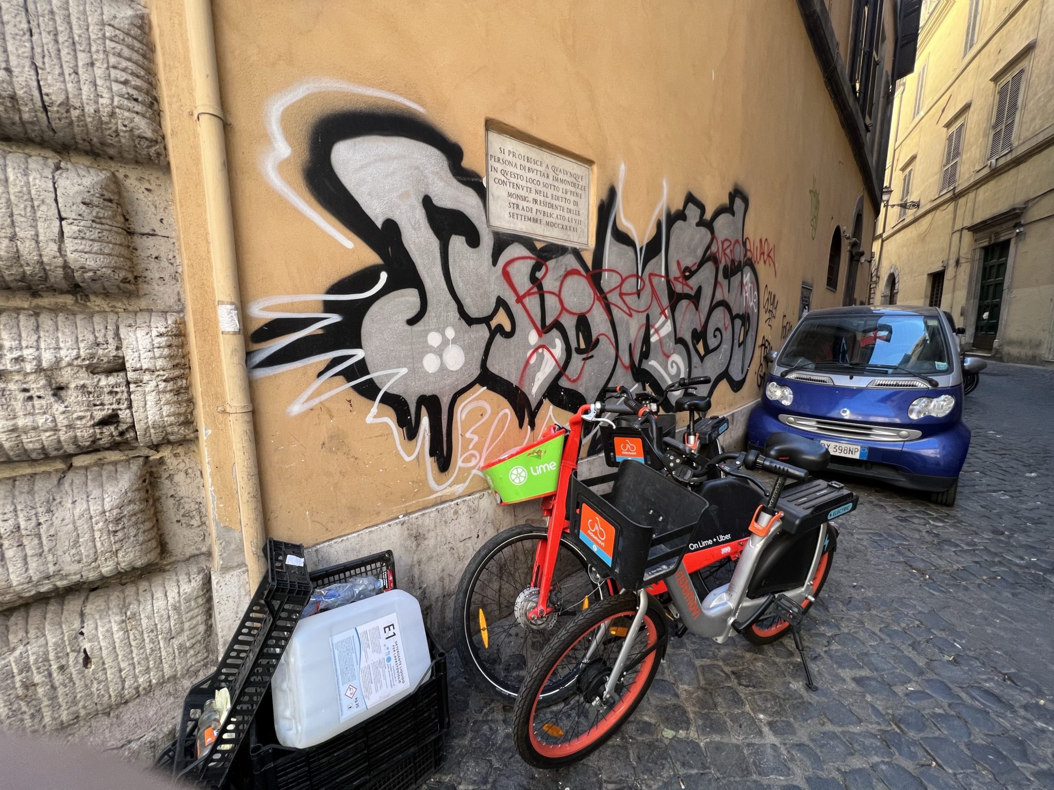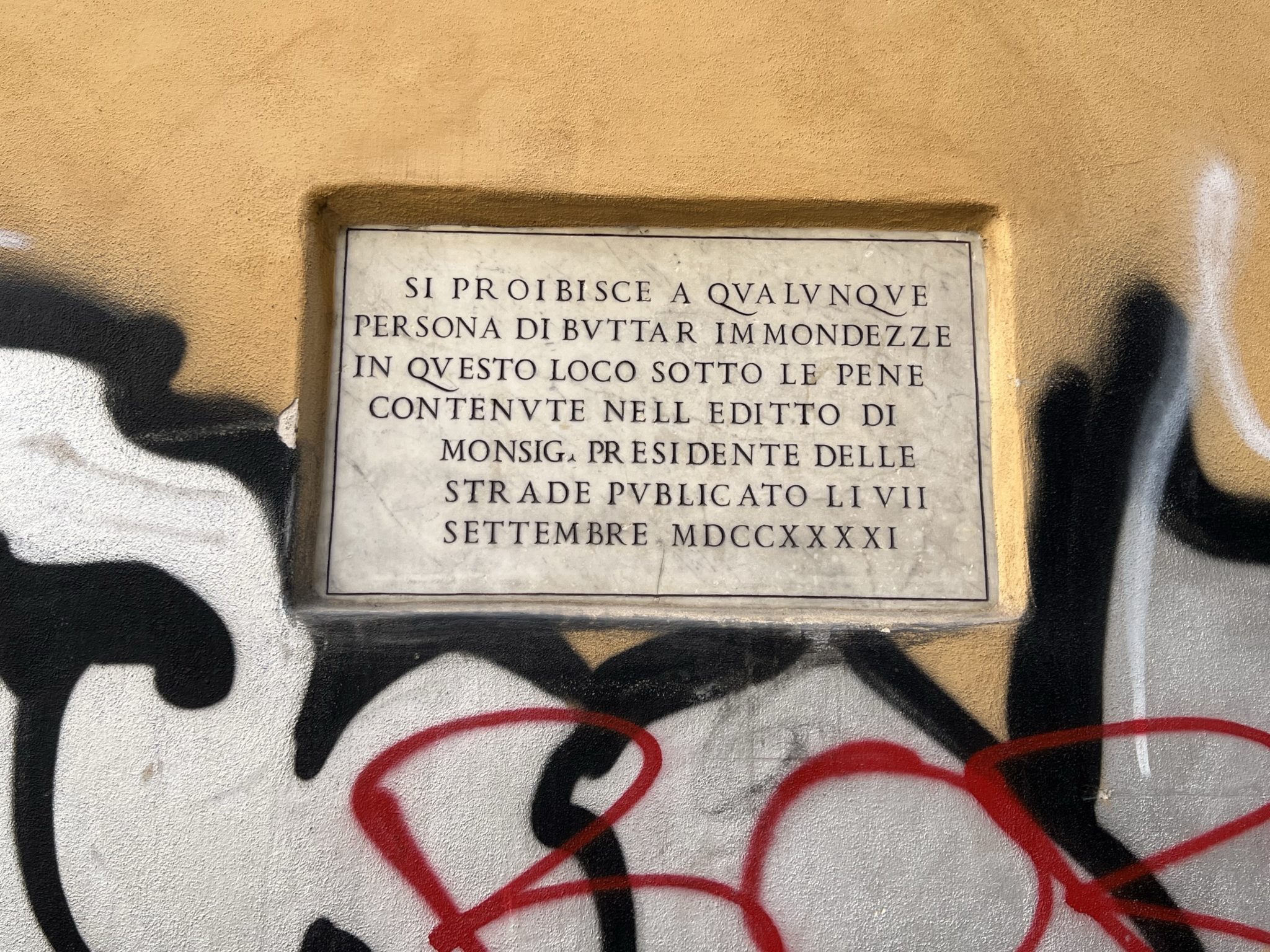 Most interesting, however, that your ‘piddler’ remains aware of certain bounds, and covers the tablet so that he only damages the wall with his paint, not the marble. Partly perhaps he knows that the penalty for vandalism would then be more serious, but maybe, just maybe, he still has a conscience and some residual respect for something both beautiful and historic.